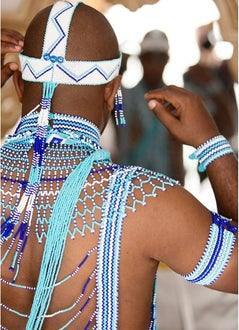•'Iqhiya' is a cloth that is fitted to the head and covered with beads. Women then wear a small and light weight blanket on the waist called 'uxakatha'.